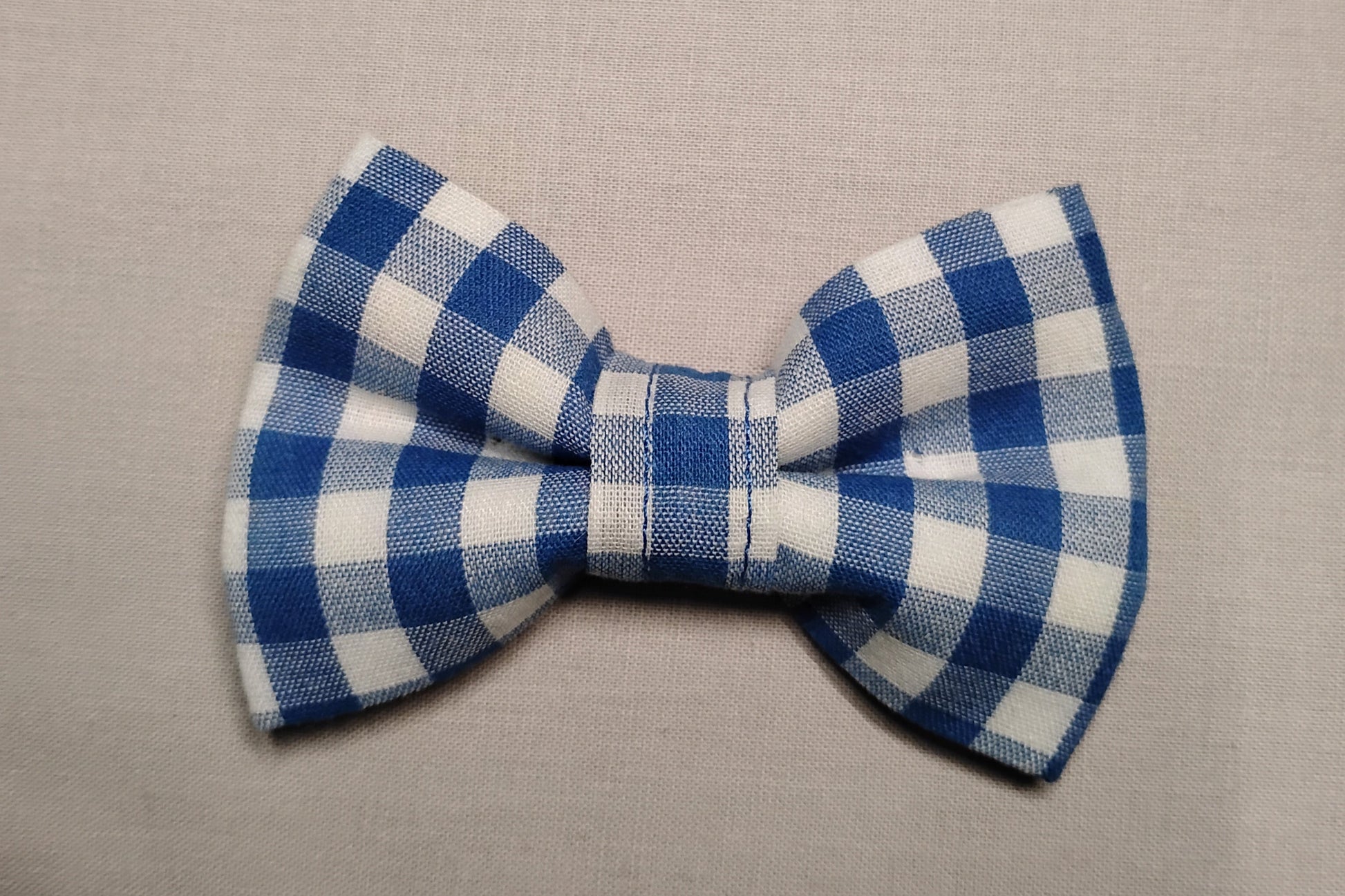 Our bow ties are safe, easy to use, made to last and 100% individually handmade. Simply take off your dog's collar, slide the collar through the elastic bands on the back of the bow tie and put the collar back on your pet...and BAM! Added cuteness! Our bow ties are made so they stay on the collar and can't be shaken off or removed in any way by your pet. Thus, ensuring that your pet can't take it off and chew it up when you're not looking. Our bow ties are specially made to stay thick and not flatten over time and to hold their shape well even through washings. I offer four sizes, and you can go up or down on the size based on your preferences (I recommend not going up or down by more than one size due to elastic sizes on bows).
