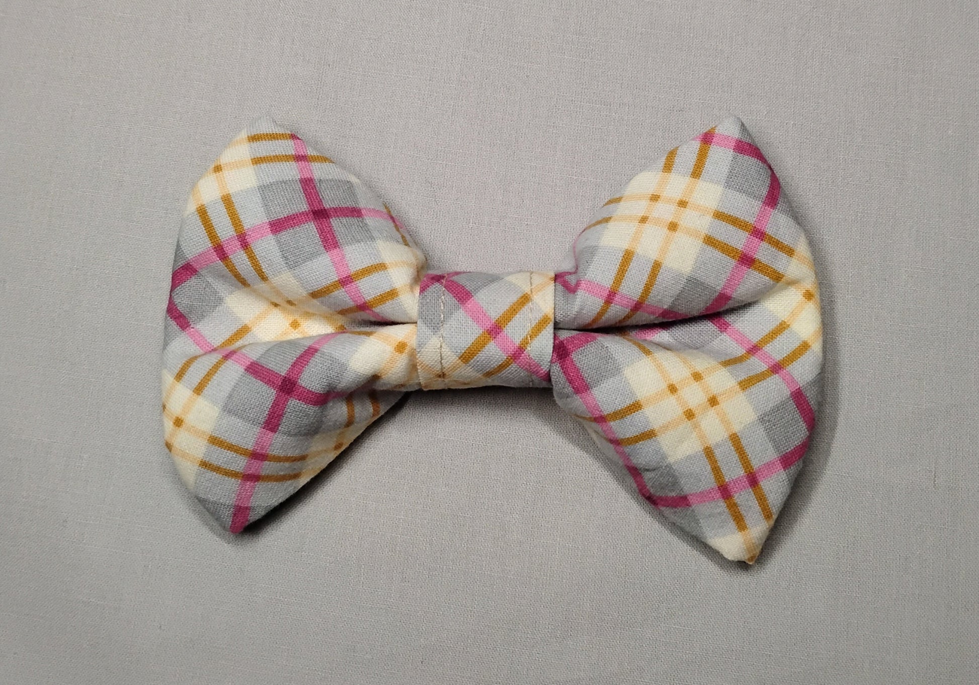 Grey, Pink & Yellow Plaid Pet Bow Tie