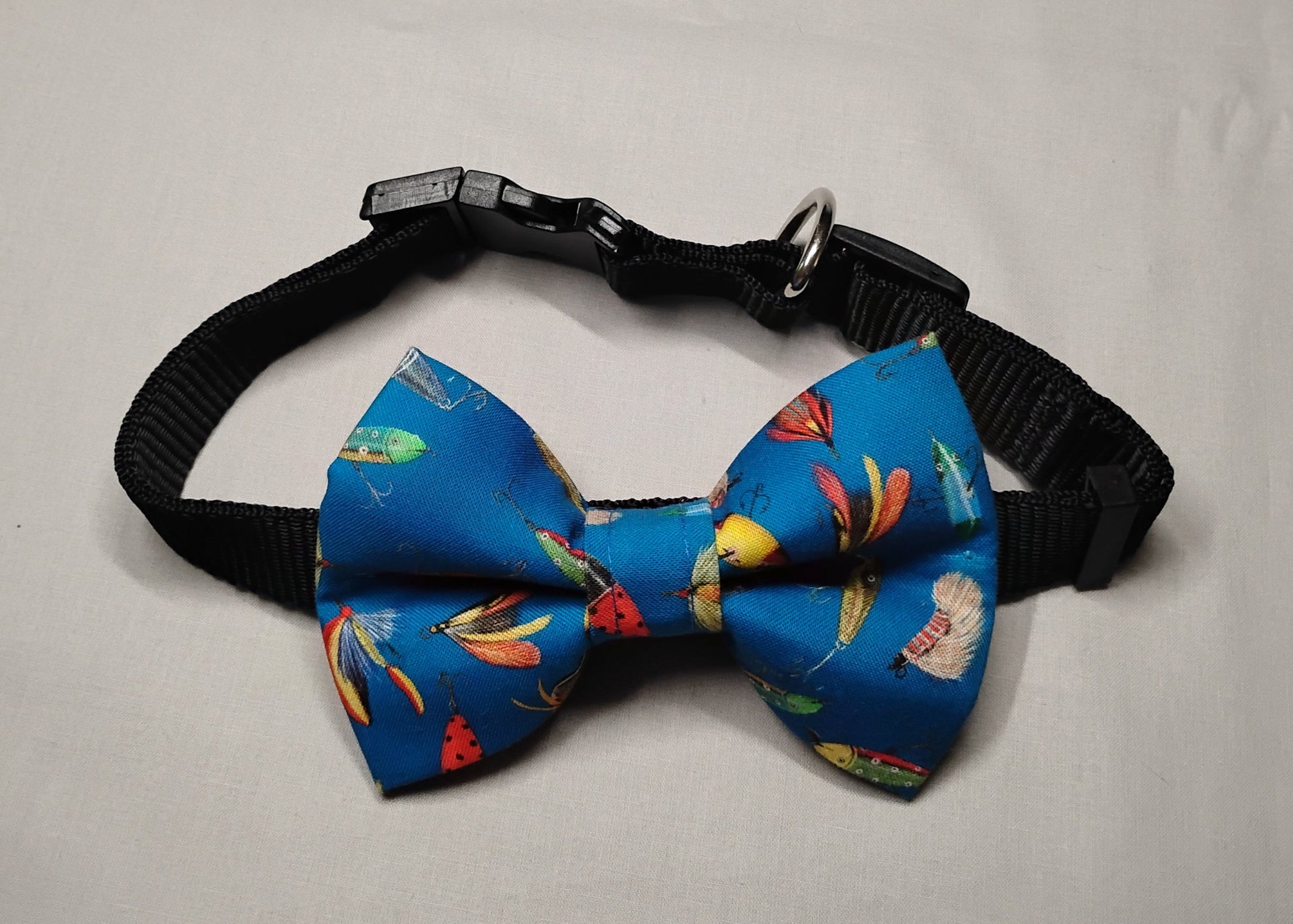 Our bow ties are safe, easy to use, made to last and 100% individually handmade. Simply take off your dog's collar, slide the collar through the elastic bands on the back of the bow tie and put the collar back on your pet...and BAM! Added cuteness! Our bow ties are made so they stay on the collar and can't be shaken off or removed in any way by your pet. Thus, ensuring that your pet can't take it off and chew it up when you're not looking. Our bow ties are specially made to stay thick and not flatten over time and to hold their shape well even through washings. I offer four sizes, and you can go up or down on the size based on your preferences (I recommend not going up or down by more than one size due to elastic sizes on bows).
