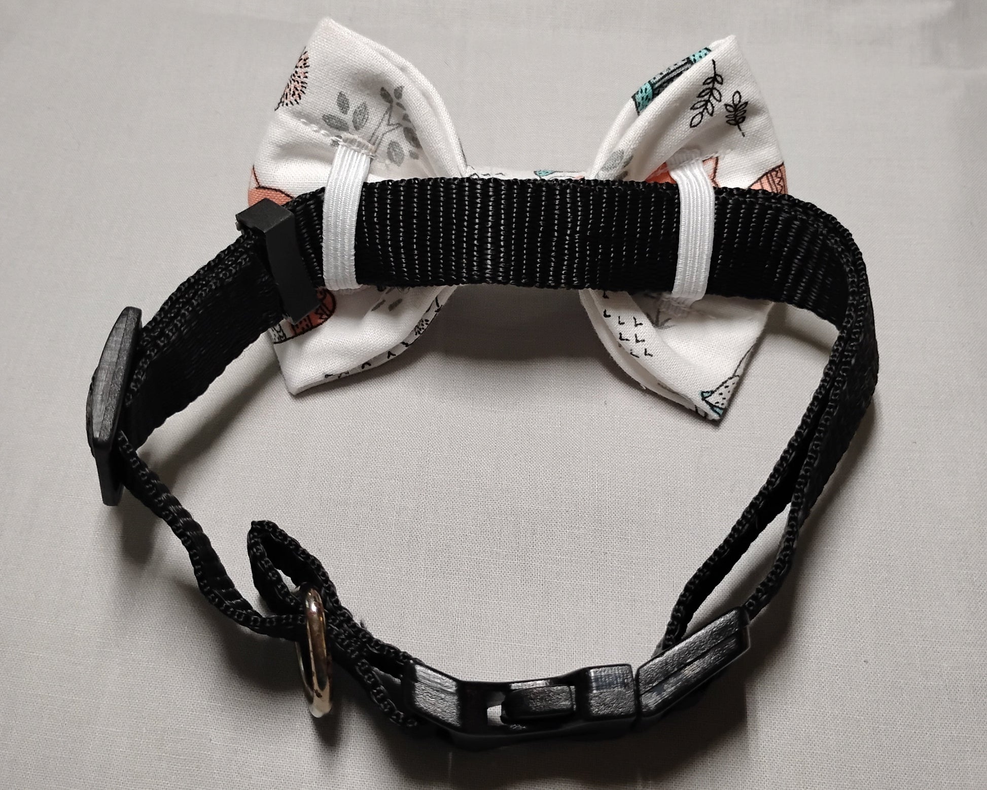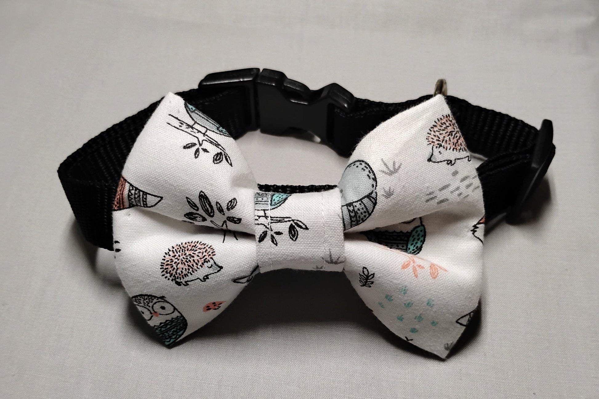Our bow ties are safe, easy to use, made to last and 100% individually handmade. Simply take off your dog's collar, slide the collar through the elastic bands on the back of the bow tie and put the collar back on your pet...and BAM! Added cuteness! Our bow ties are made so they stay on the collar and can't be shaken off or removed in any way by your pet. Thus, ensuring that your pet can't take it off and chew it up when you're not looking. Our bow ties are specially made to stay thick and not flatten over time and to hold their shape well even through washings. I offer four sizes, and you can go up or down on the size based on your preferences (I recommend not going up or down by more than one size due to elastic sizes on bows).